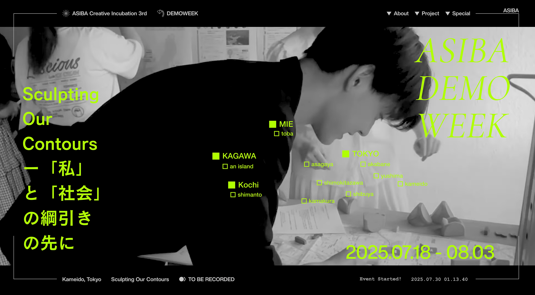 ASIBAインキュベーション3期は、その純粋な「やりたい」「つくりたい」を社会に対して形にするために必要な知識、共創しあうコミュニティ文化と仲間、実践に必要な手法やフレーム、強力なメンター、そしてレクチャーシリーズを提供し「問いと実践の往復」をする3ヶ月のプログラムを開設し、参加者を募集する。