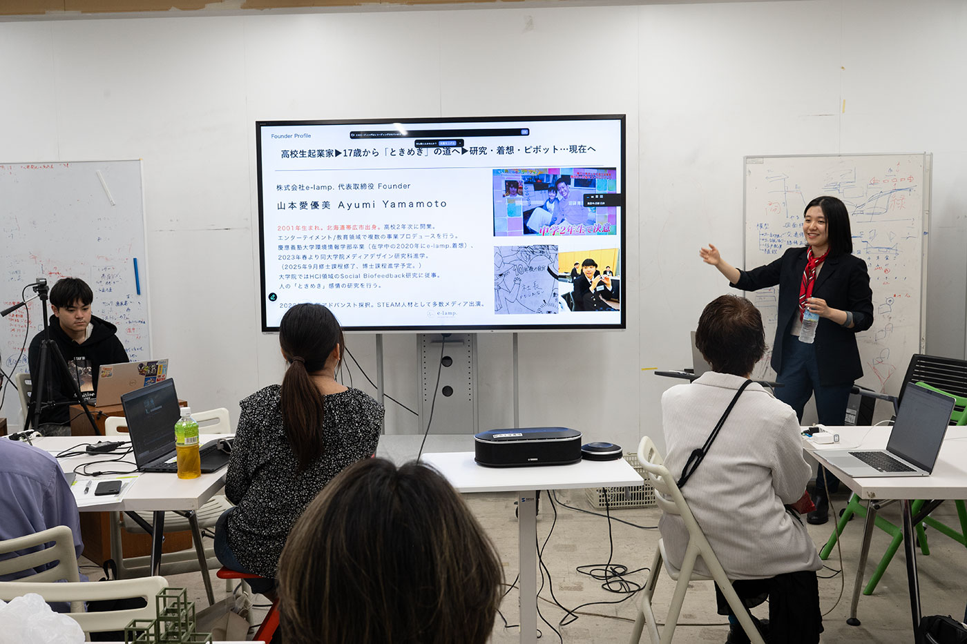 ■山本愛優美さん プロフィール 株式会社e-lamp. 代表取締役 2001年生まれ。北海道帯広市出身。高校2年次に開業。エンターテイメント/教育領域で複数の事業プロデュースを行う。慶應義塾大学環境情報学部卒業(在学中の2020年にe-lamp.着想)、2023年春より同大学院メディアデザイン研究科進学。(2025年9月修士課程修了、博士課程進学予定。)大学院ではHCI領域のSocial Biofeedback研究に従事。人の「ときめき」感情の研究を行う。 2022年度未踏アドバンスト採択。STEAM人材として多数メディア出演。 Webサイト:https://tokimeki.studio.site/ 株式会社e-lamp.:https://e-lamp-official.studio.site/
